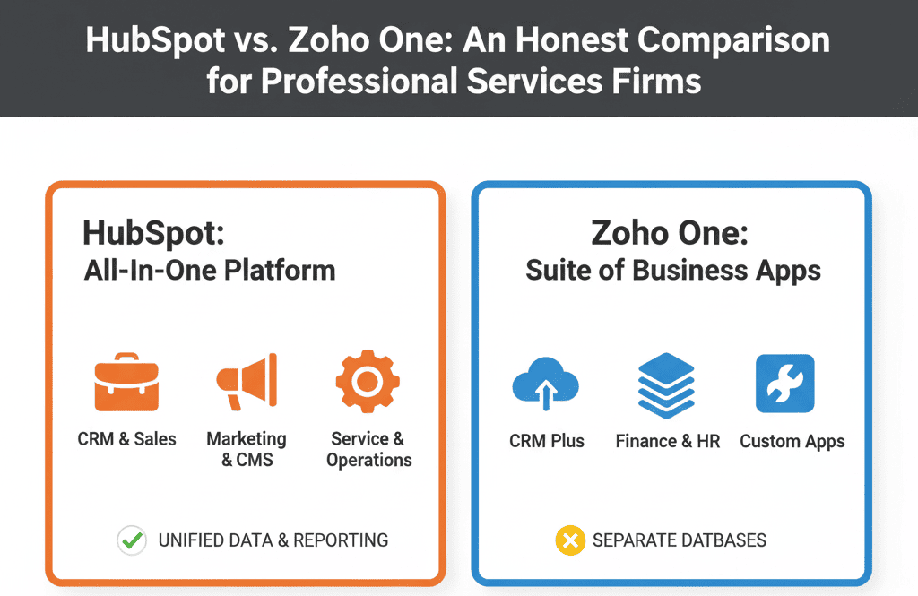 HubSpot vs. Zoho One: An Honest Comparison for Professional Services Firms By Muhammad Asghar Category: The HubSpot Diagnostic Est. Read